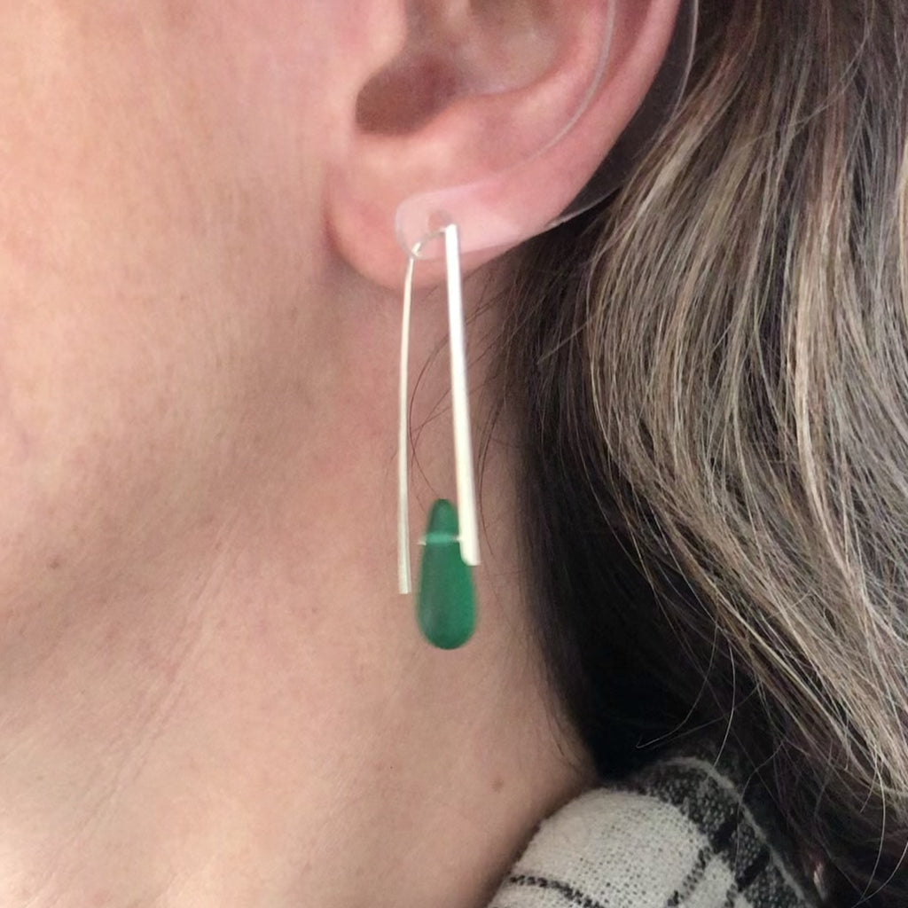 The bead hangs from the bottom of the hook and has a gentle swinging movement when worn.